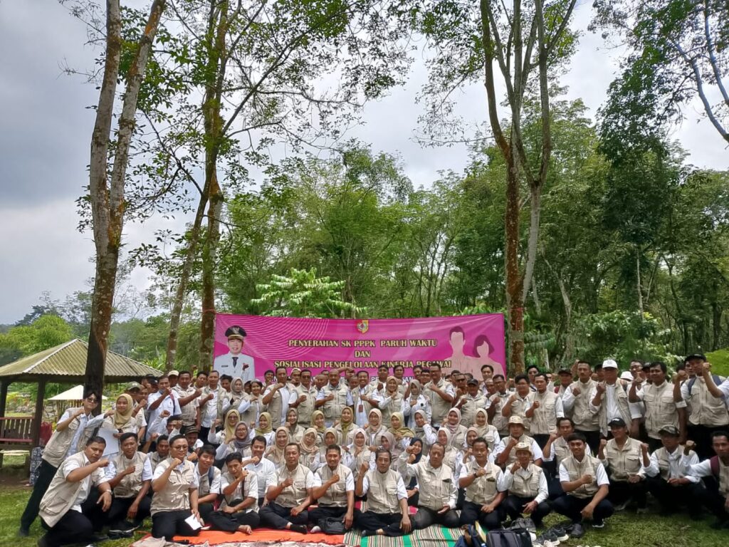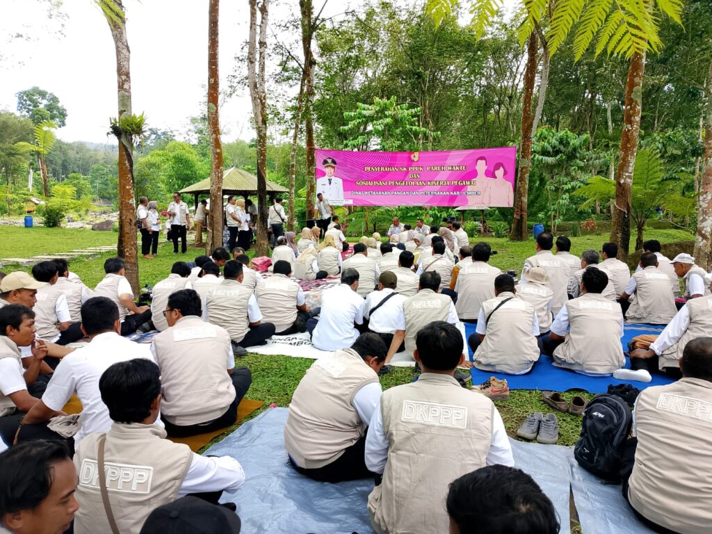 JEMBER, www.jembertoday.net – Dinas Ketahanan Pangan dan Peternakan (DKPP) Kabupaten Jember menyerahkan Surat Keputusan (SK) kepada 75 Pegawai Pemerintah dengan Perjanjian Kerja (PPPK) Paruh Waktu di tempat wisata glamping Kalijompo Sukorambi.