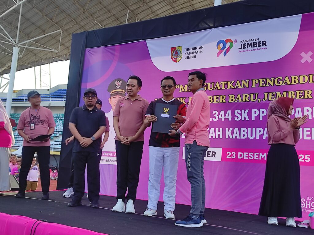 Penyerahan simbolis SK PPPK Paruh Waktu dilaksanakan di stadion JSG (Jember Sport Garden), Selasa, (23/12/2025).