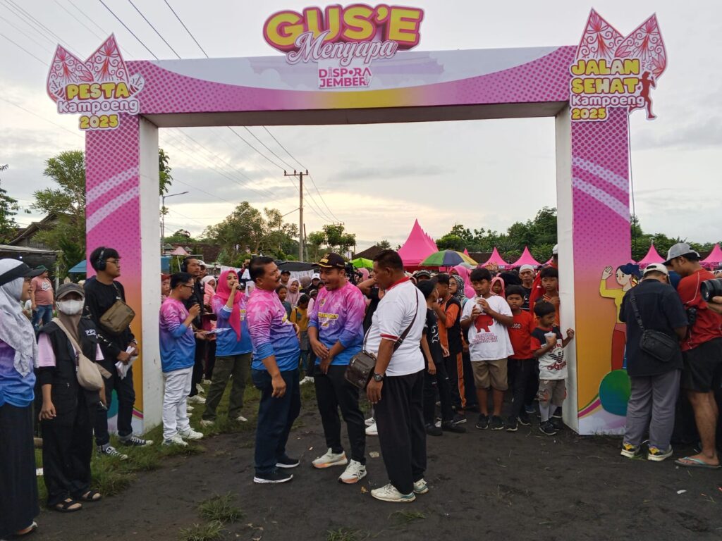JEMBER, www.jembertoday.net – Ning Ghyta Eka Puspita memberangkatkan peserta jalan sehat dan membuka Pesta Kampung di lapangan Desa Padomasan Kecamatan Jombang.