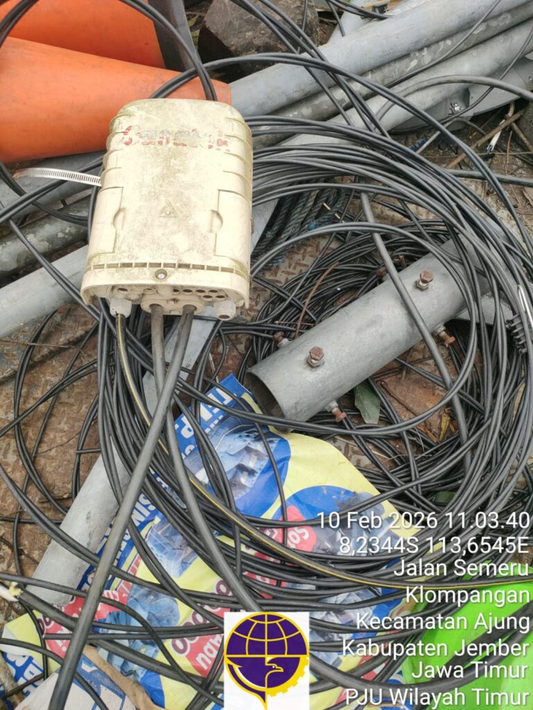 Adapun wilayah yang menjadi sasaran kali ini adalah di wilayah timur Desa Klompangan Kecamatan Ajung. Di sana tim berhasil menertibkan 2 kotak provider tanpa ijin yang menempel di tiang PJU.
