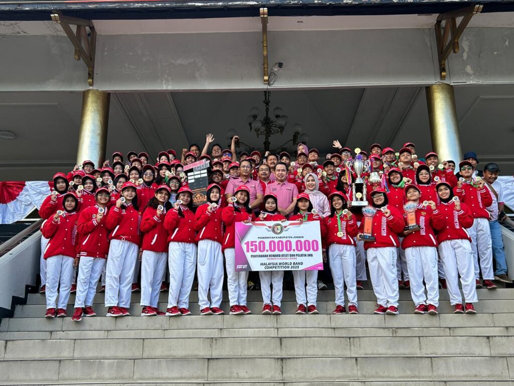 “Siang ini tadi Gus Bupati berkenan untuk menerima atlet Jember Marching Band yang telah berlaga mulai tanggal 8 sampai 15 September yang lalu di Keddah Malaysia, Alhamdulillah berhasil meraih 5 medali emas,” ucap EBS sapaan akrab Kadispora Jember usai penyerahan di Pendopo Wahyawibawagraha, Kamis, (25/12/2025).