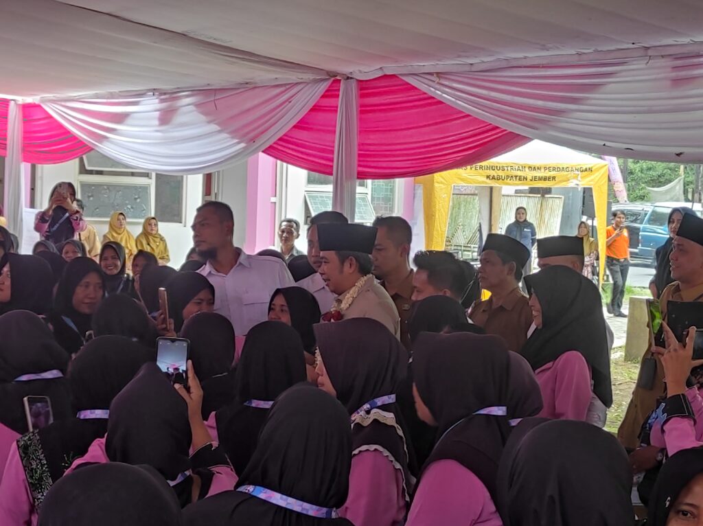Dalam sambutannya Bupati Jember, Gus Fawait mengabsen undangan dengan nada guyonan. Spontan hadiran khususnya emak-emak bersorak.